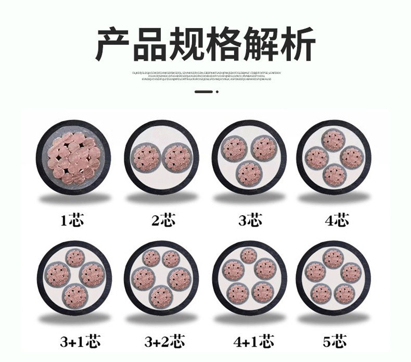 電纜芯數(shù):1芯、2芯、3芯、4芯(3+1)、5芯(3+2、4+1)