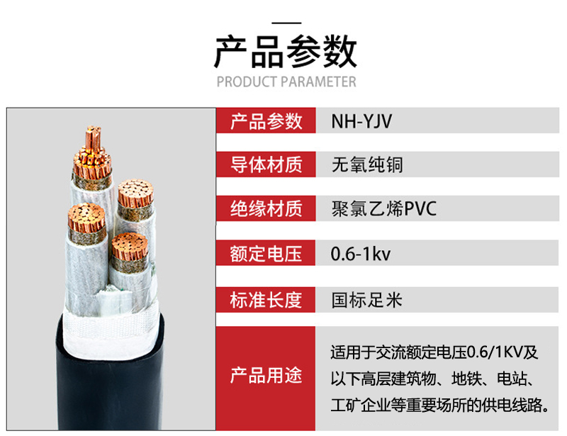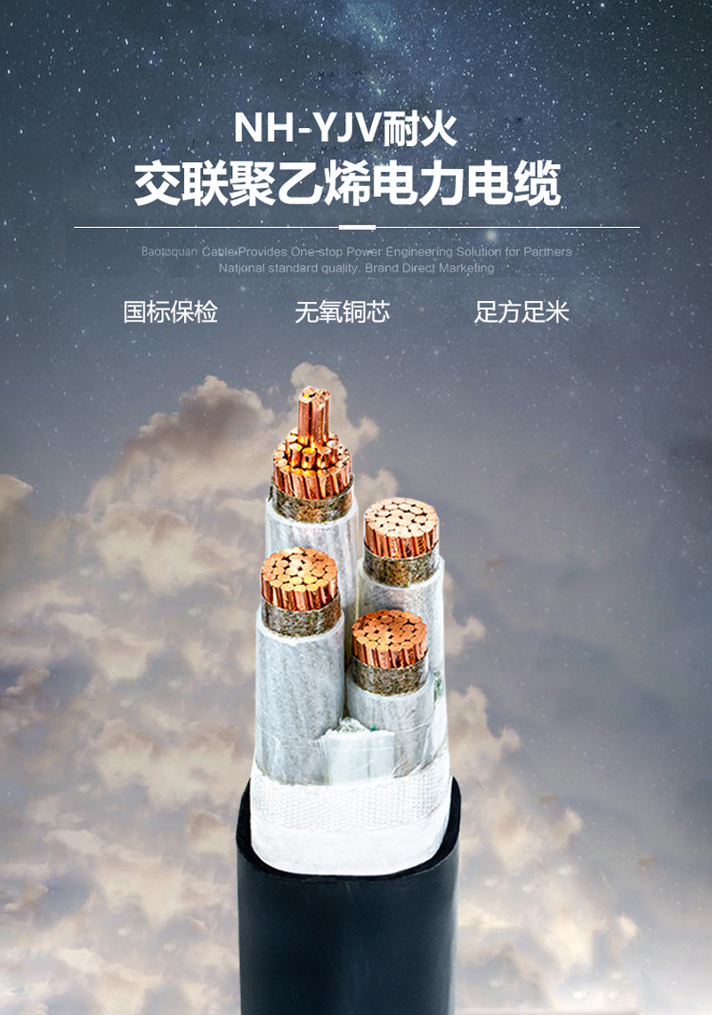 NH-YJV電纜的全稱為:銅芯導(dǎo)體交聯(lián)聚乙烯絕緣,聚氯乙烯護(hù)套耐火型電力電纜。
